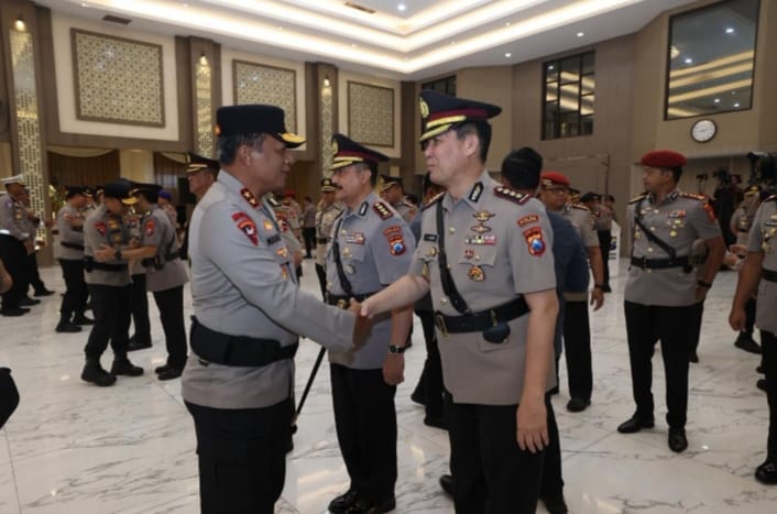 Kepala Kepolisian Daerah Jawa Timur Irjen Pol Drs. Nanang Avianto, M.Si memimpin upacara serah terima jabatan (sertijab) sejumlah pejabat utama (PJU) dan kapolres di jajaran Polda Jawa Timur, Senin (12/1/2026).