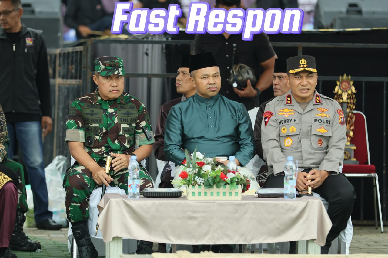 Acara yang berlangsung khidmat ini turut dihadiri oleh para pejabat tinggi, di antaranya Kapolda Riau Irjen Pol Dr. Herry Heryawan, S.I.K., M.H., M.Hum, Pangdam XIX/TT Mayjen TNI Dr. Agus Hadi Waluyo, S.A.P., M.M., CHRMP, Danrem 031/WB Brigjen TNI Jarot Suprihanto, Bupati Kuantan Singingi Dr. Suhardiman Amby, A.K., M.M., serta Kapolres Kuansing AKBP R. Ricky Pratidiningrat, S.I.K., M.H. bersama jajaran Forkopimda dan tokoh adat Kabupaten Kuansing.