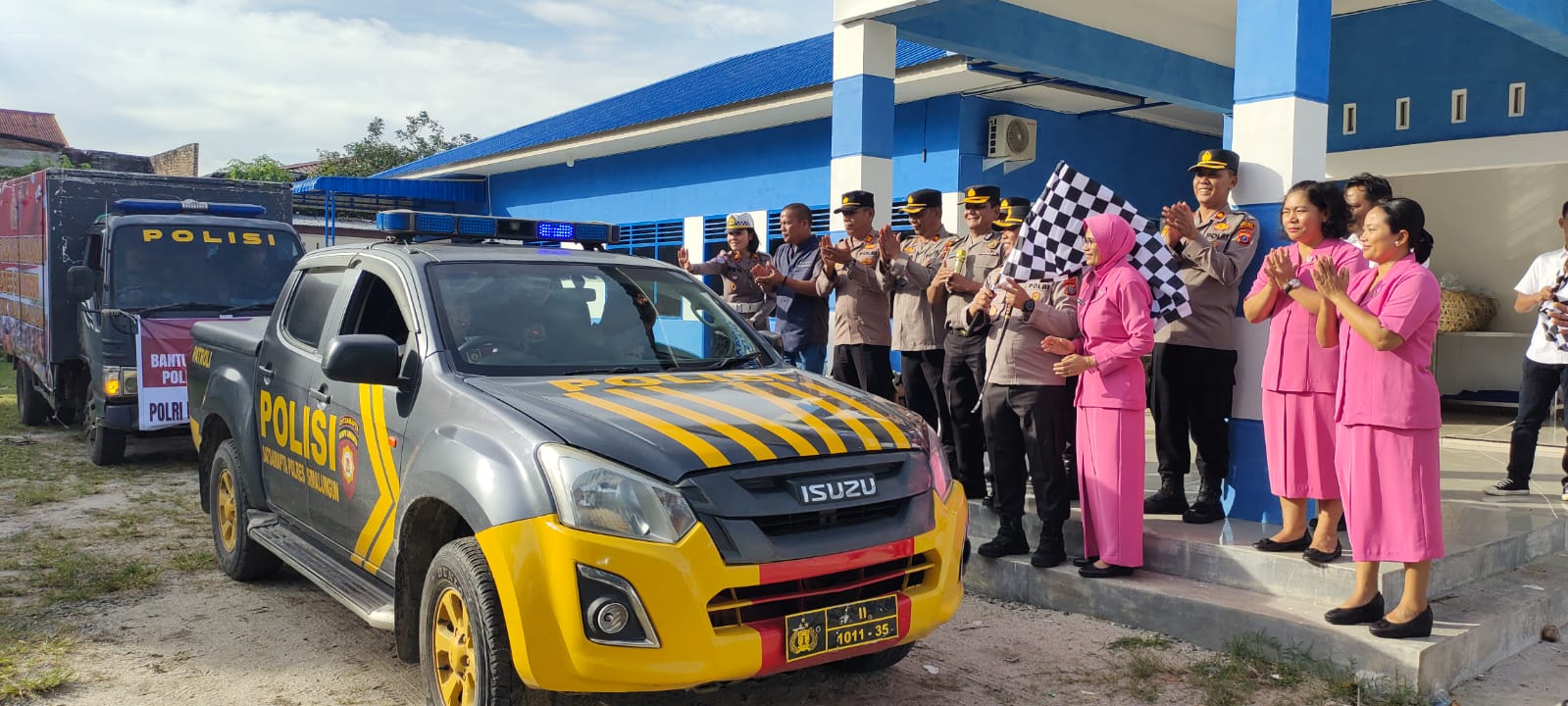 Transportasi mengangkut Bantuan, menggunakan Truck Box Dalmas yang dikemudikan Bripda Elkananda Saragih, dikawal Patroli Samapta Doubel Cabin yang dikemudikan Bripda Rajomat Purba.