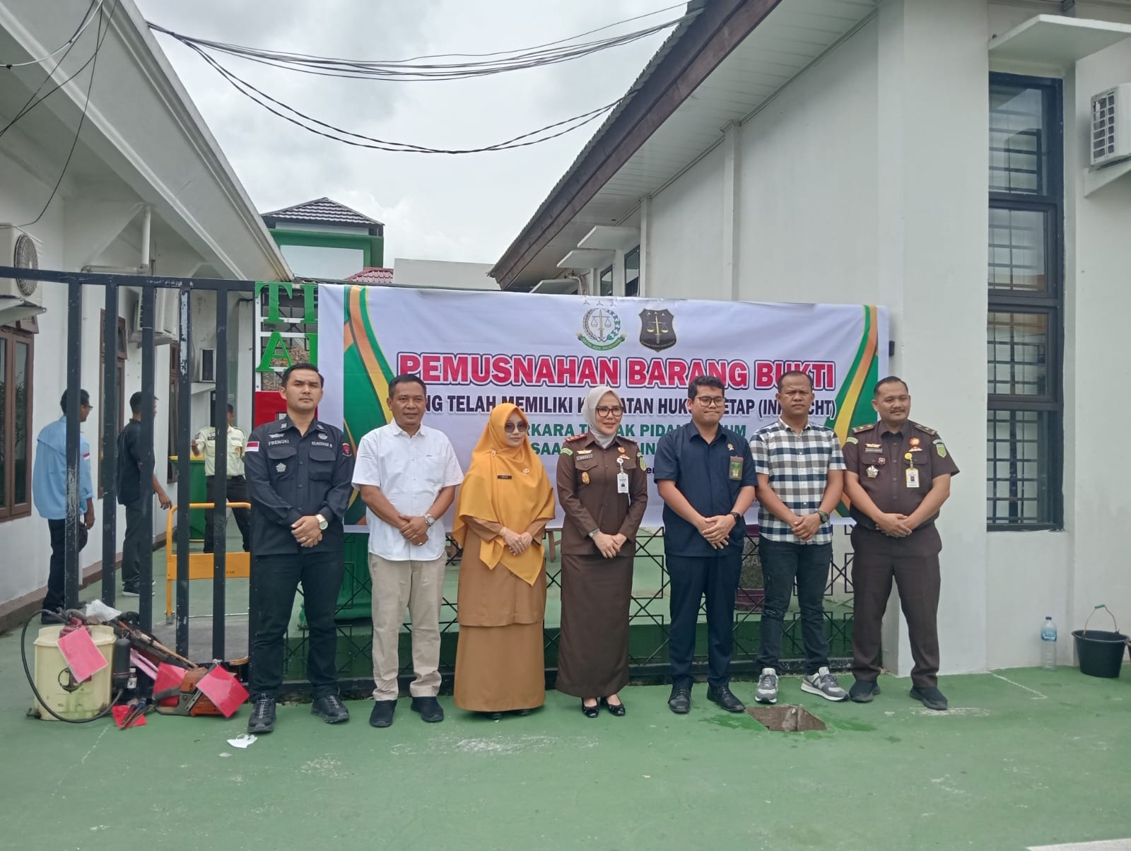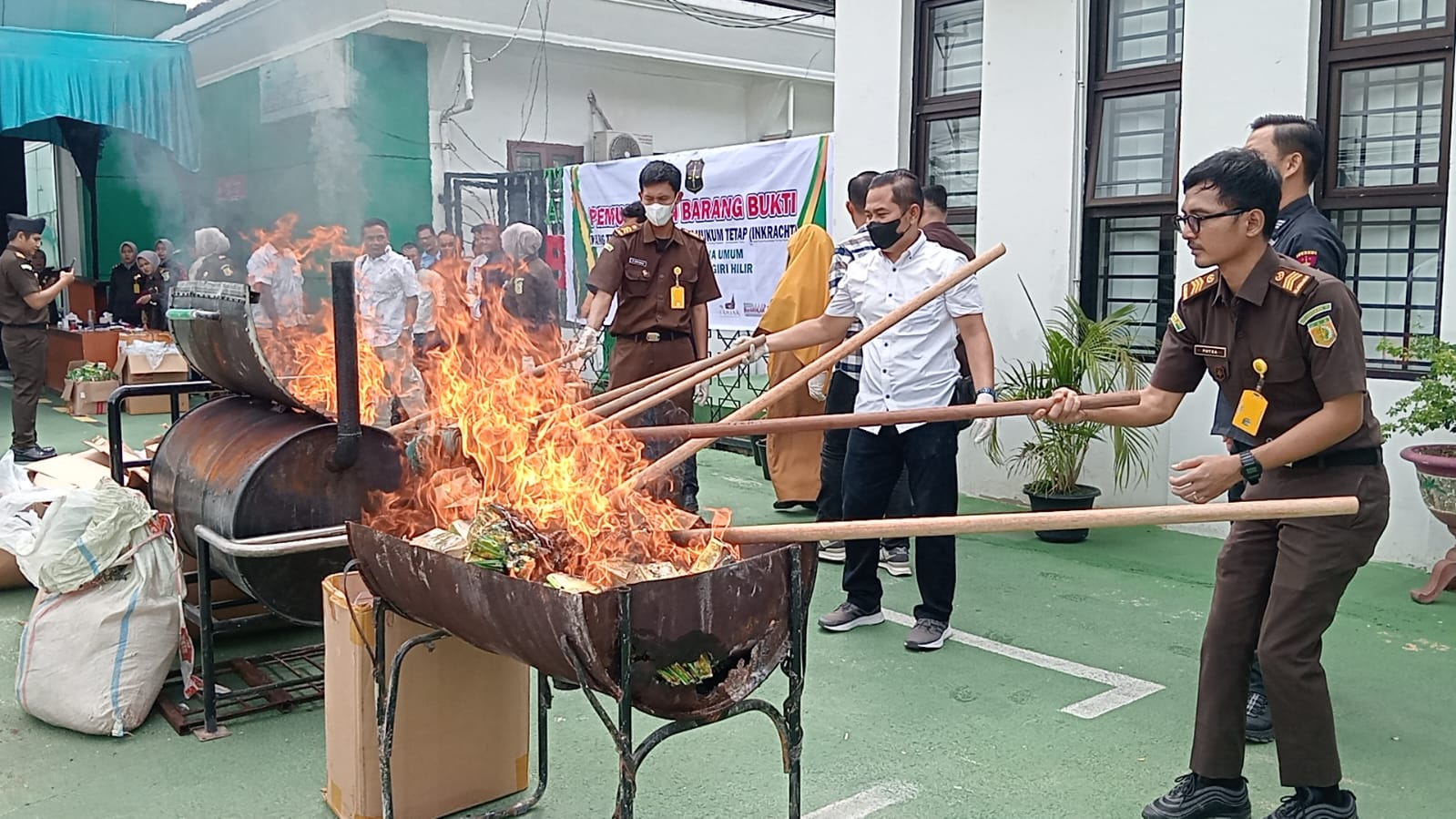 Kejaksaan Negeri (Kejari) Indragiri Hilir melaksanakan pemusnahan barang bukti hasil tindak pidana yang telah berkekuatan hukum tetap (inkracht) di halaman Kantor Kejari Indragiri Hilir, Jalan Prof. M. Yamin, S.H. No. 5, Tembilahan, Selasa (7/10/2025).