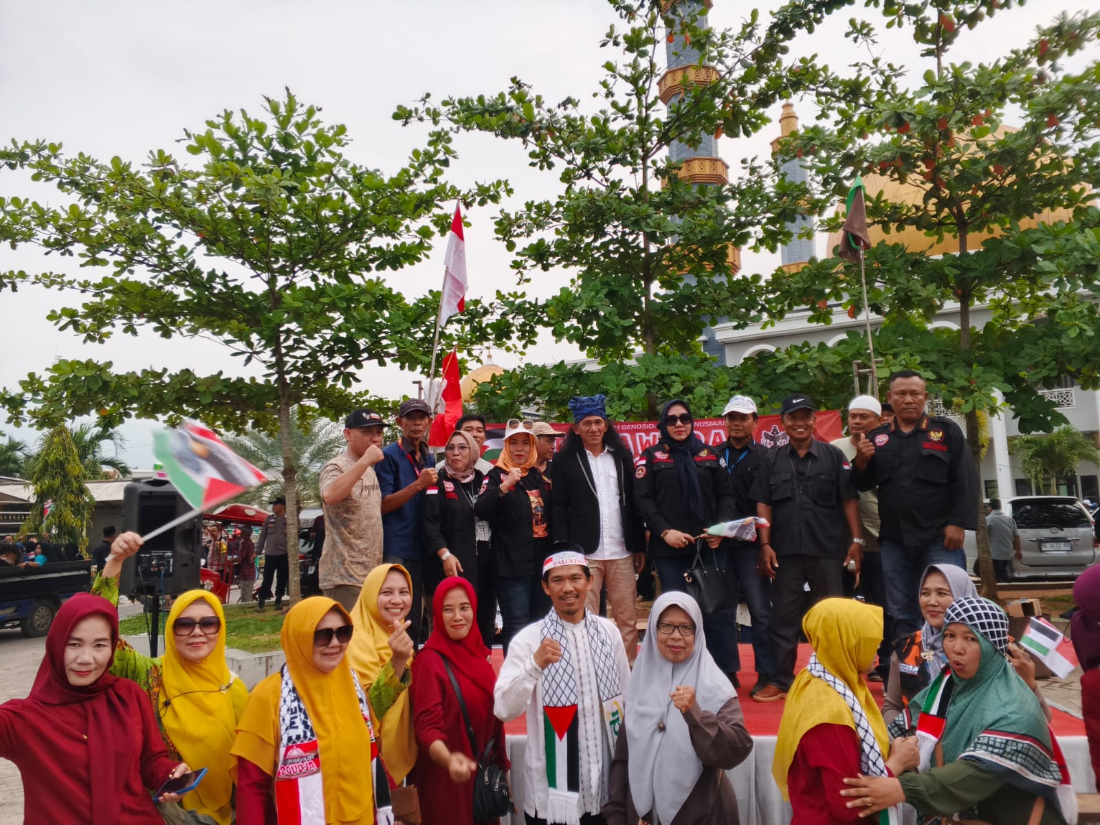Suara sorak ramai ramai pendukung palestina menggema di area bumi andan jejama provinsi lampung. Orasi free Palestina yang di gelar di halaman masjid ISLAMIC CENTRE, Jumat, 10 / 10 / 2025 Melibat kan 53 aliansi organisasi masyarakat kabupaten pesawaran.