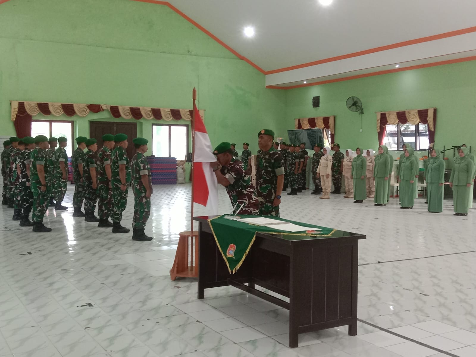 Kodim 0829/Bangkalan menggelar kegiatan Korps Raport Pindah Satuan personel pada Jumat, (13/2/26) di Gedung Manunggal Kodim 0829/Bangkalan. Kegiatan yang berlangsung khidmat ini merupakan bagian dari tradisi satuan dalam melepas anggota yang mendapat penugasan di tempat baru. Bertindak sebagai penanggung jawab kegiatan, Pgs. Pasipers Kodim 0829/Bangkalan Kapten Arm Muasari. Hadir dalam kegiatan tersebut Dandim 0829/Bangkalan Letkol Inf. Nanang Fahrur Rozi, S.Pd., para Perwira Staf, Danramil jajaran, perwakilan anggota Koramil, PNS Kodim, serta Ketua Persit KCK Cabang XLVIII beserta pengurus.