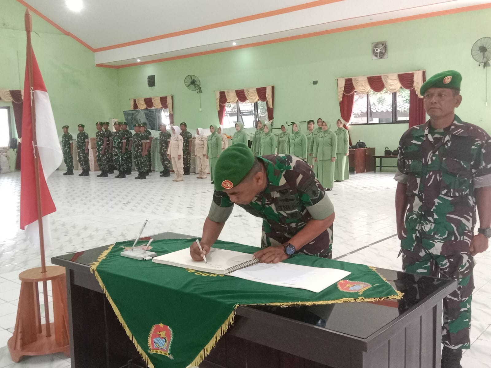 Kodim 0829/Bangkalan menggelar kegiatan Korps Raport Pindah Satuan personel pada Jumat, (13/2/26) di Gedung Manunggal Kodim 0829/Bangkalan. Kegiatan yang berlangsung khidmat ini merupakan bagian dari tradisi satuan dalam melepas anggota yang mendapat penugasan di tempat baru. Bertindak sebagai penanggung jawab kegiatan, Pgs. Pasipers Kodim 0829/Bangkalan Kapten Arm Muasari. Hadir dalam kegiatan tersebut Dandim 0829/Bangkalan Letkol Inf. Nanang Fahrur Rozi, S.Pd., para Perwira Staf, Danramil jajaran, perwakilan anggota Koramil, PNS Kodim, serta Ketua Persit KCK Cabang XLVIII beserta pengurus.