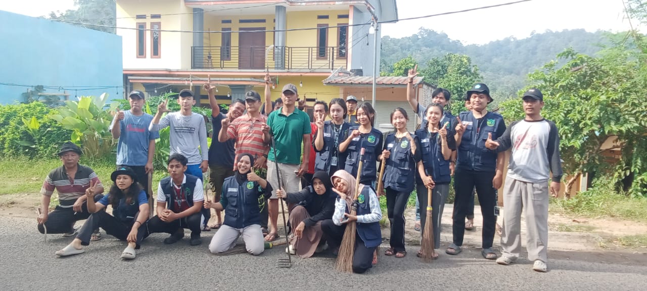 Mahasiswa bekerja bahu-membahu bersama warga, dipandu langsung oleh kepala Lingkungan 01 yang turut turun tangan dan memberikan arahan demi kelancaran kegiatan.