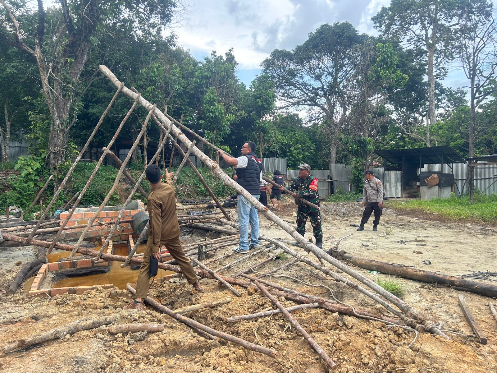Berdasarkan investigasi lapangan serta hasil penelusuran tim di wilayah Kecamatan Bayung Lencir, aktivitas illegal drilling masih ditemukan beroperasi di sejumlah titik, termasuk di Desa Kali Berau, Kabupaten Musi Banyuasin, Provinsi Sumatera Selatan. Menindaklanjuti kondisi tersebut, Polsek Bayung Lencir kembali melakukan penertiban dan pembongkaran lokasi pengeboran minyak ilegal, Senin (27/04/2026).