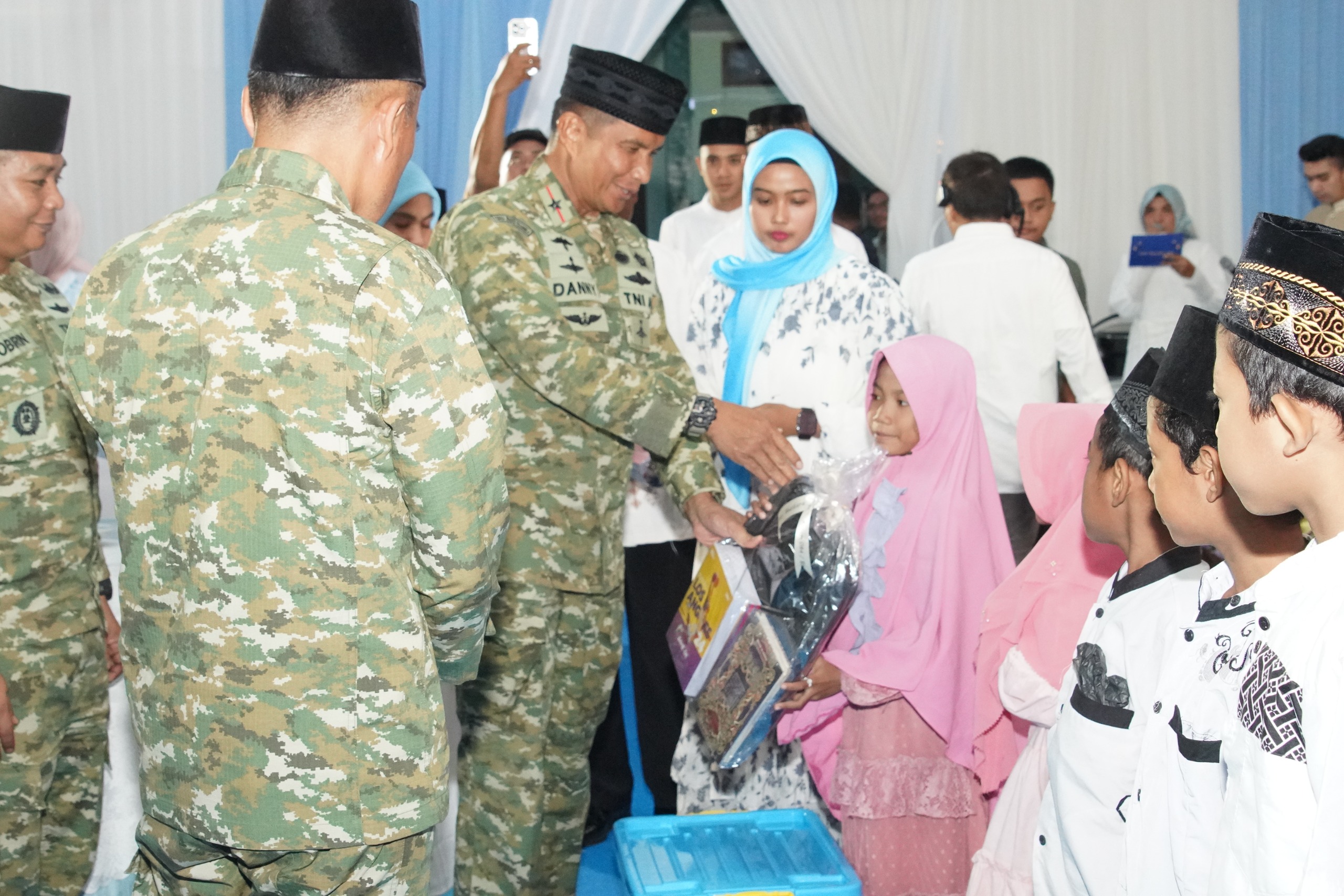 Kegiatan juga diisi dengan pemberian santunan kepada anak yatim piatu sebagai bentuk kepedulian sosial TNI kepada masyarakat di bulan yang penuh berkah ini.