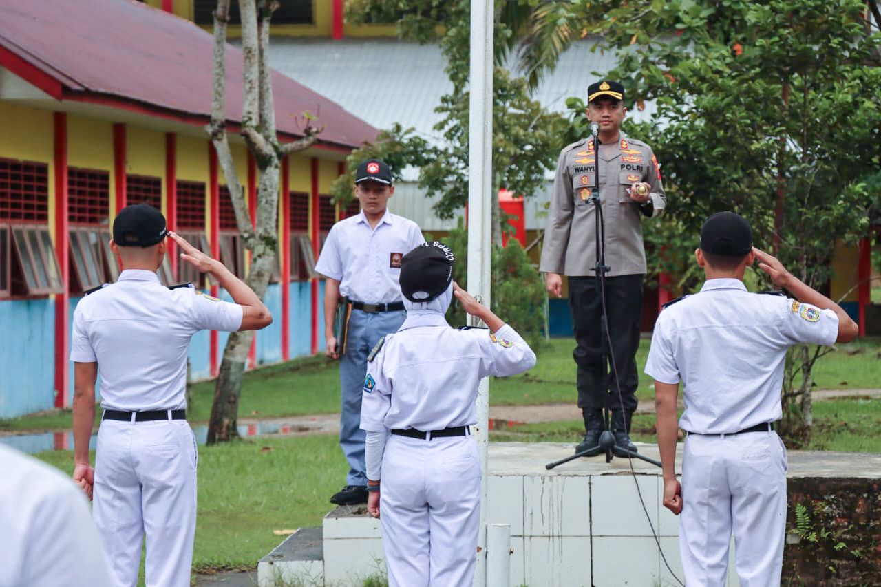 Kepala Kepolisian Resor (Kapolres) Tapanuli Tengah, AKBP Wahyu Endrajaya, S.IK., M.Si., memimpin Upacara Bendera di Sekolah Menengah Kejuruan Negeri (SMKN) 3 Sibolga, Kecamatan Pandan, Kabupaten Tapanuli Tengah, Senin (20/10/2025).
