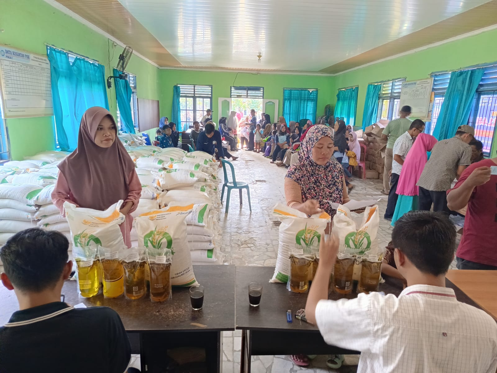 Selama proses penyaluran berlangsung, terlihat antusiasme warga yang datang secara bergiliran untuk mengambil bantuan. Aparatur desa juga turut membantu mengatur jalannya kegiatan agar tetap tertib dan lancar.