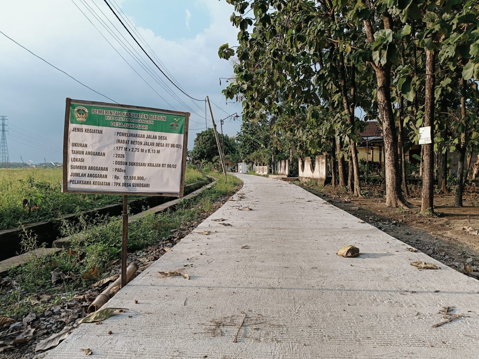 Pemerintah Desa Sukosari Kecamatan Dagangan Kabupaten Madiun menggunakan Dana PAD membangun Rabat beton jalan di Dusun sukosari krajan Desa dengan volume 177m x2,75x 0,15 m bersumber dari Dana PAD senilai 97.588.900 rupiah.