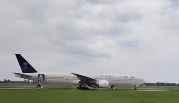 Armada Pesawat Haji Reguler itu mengangkut 442 Orang Jemaah Haji asal Indonesia, melakukan pendaratan darurat secara mendadak di Bandara Internasional Kualanamu, pukul 10.50 WIB, karena Pilot menerima pesan ancaman Bom saat berada di udara. Situasi ini segera direspon Protokol Darurat melalui pengiriman sinyal Squawk 7700, dan pengalihan rute penerbangan.