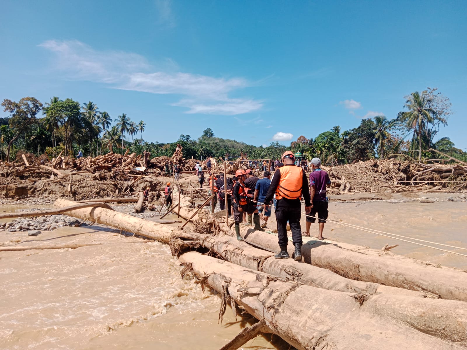 Operasi Bantuan Kemanusiaan dipimpin Danyon C Sat Brimob Polda Sumut, Kompol Zaenal Muhlisin, fokus pencarian Korban Hilang, Penyeberangan Warga, dan Evakuasi Warga yang membutuhkan bantuan Medis.