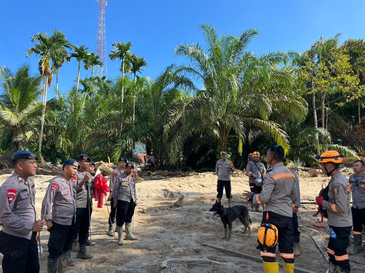 “Saat ini Personel Sat Brimob bersama Tim K9 Baharkam Polri fokus melakukan pencarian terhadap Korban yang diduga tertimbun Material Banjir Bandang. Setiap titik yang berpotensi menjadi lokasi tertimbunnya Korban, disisir dengan metode manual dan bantuan anjing pelacak,” katanya.