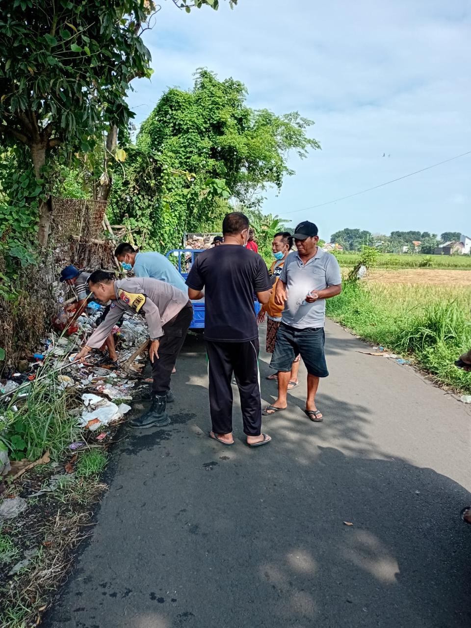 Dalam kegiatan tersebut, Bhabinkamtibmas Kelurahan Pohsangit Kidul bersama unsur tiga pilar kelurahan dan warga setempat bergotong royong memindahkan sampah dari lokasi tersebut untuk kemudian dibuang ke tempat pembuangan sampah (TPS) terdekat.