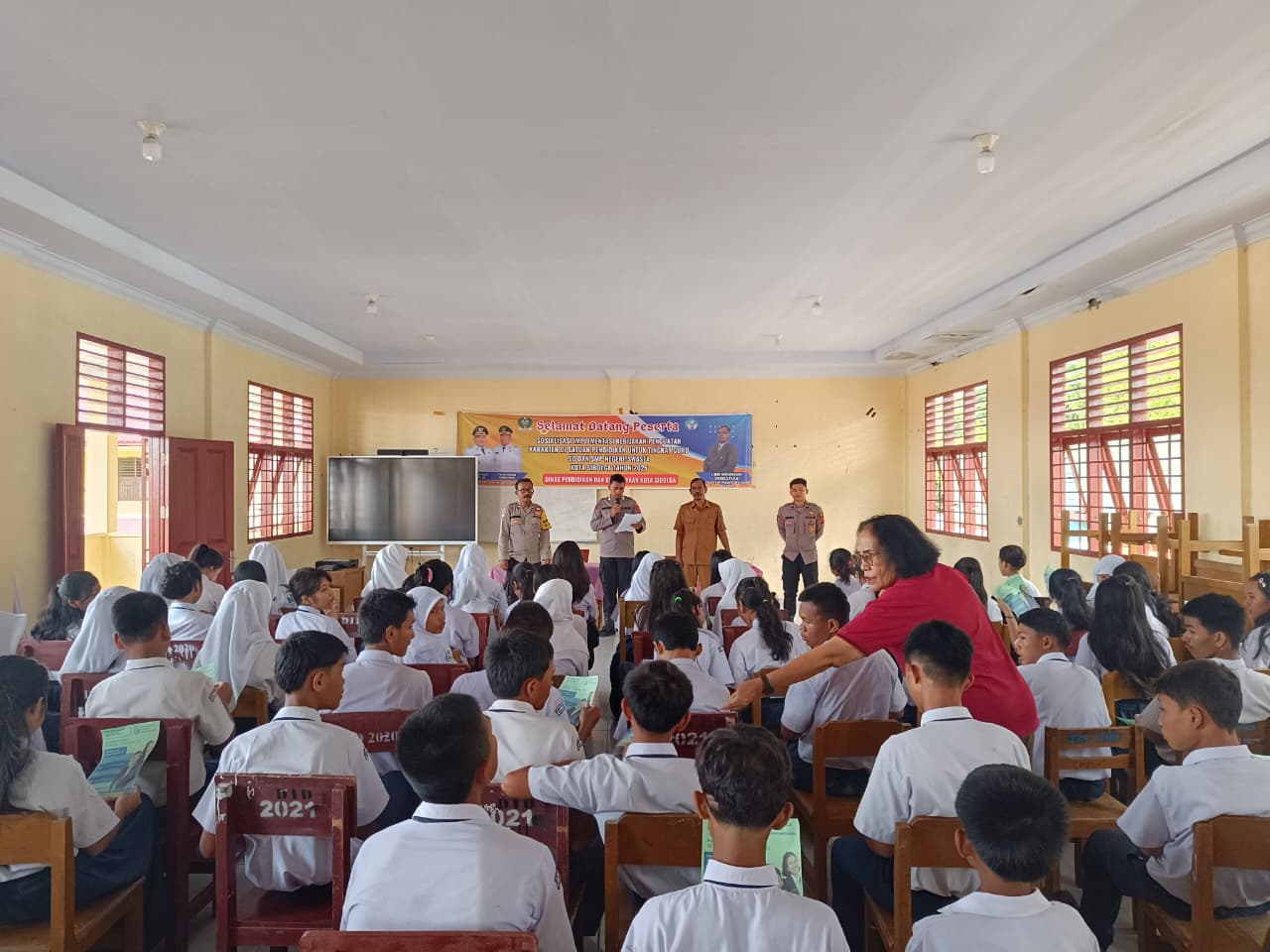 Kegiatan Police Goes To School di Wilayah Hukum Polres Sibolga berjalan aman, tertib, dan kondusif. Program ini diharapkan memperkuat kesadaran hukum di kalangan Pelajar, untuk mencegah terjadinya kenakalan remaja di Kota Sibolga. (Dharma)