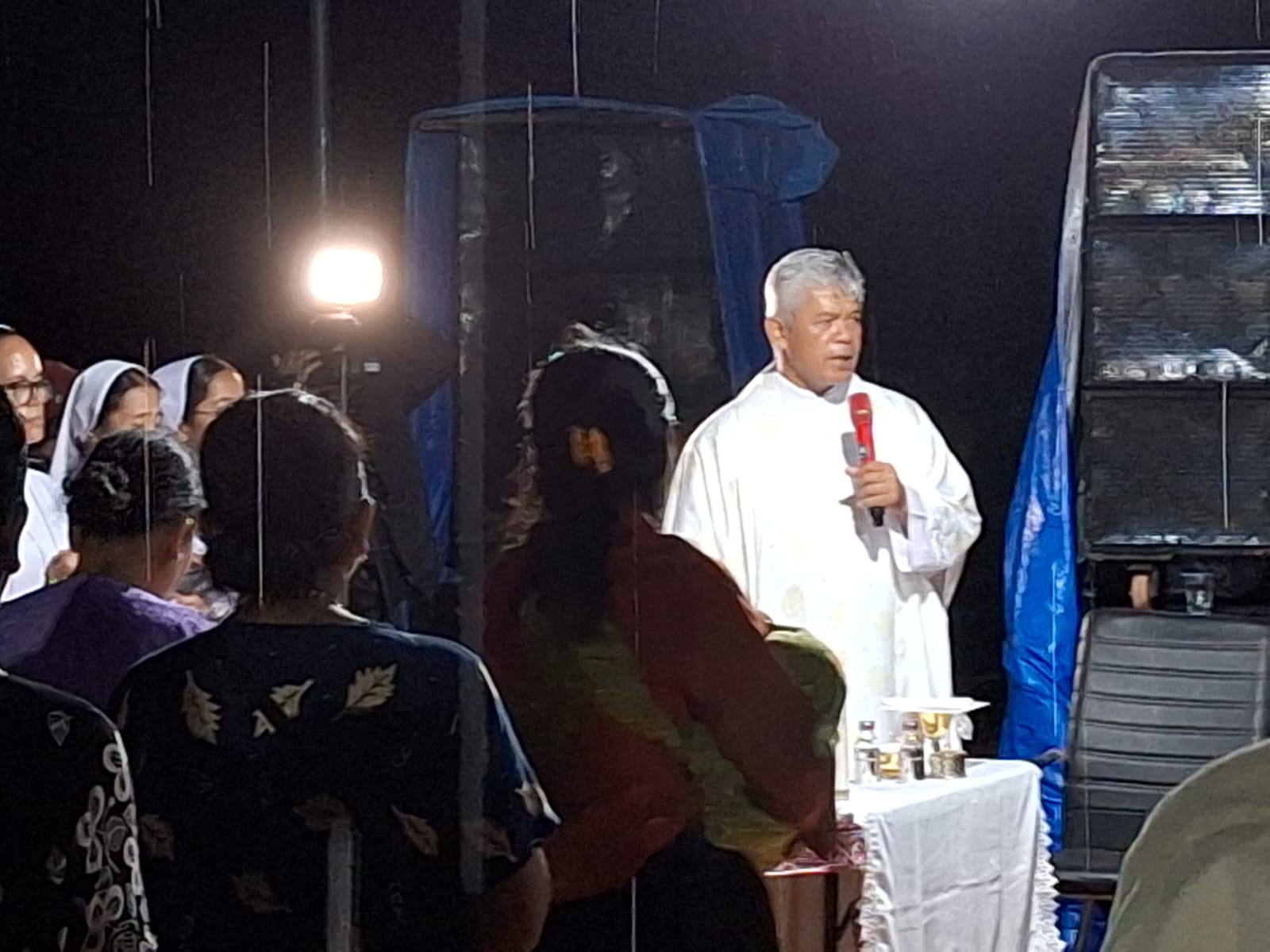 Perayaan Ibadah Natal dimulai pukul 20.00 WIB. Para Korban Pengungsi Bencana Alam tetap dapat menjalankan Perannyaan Ibadah Natal dengan khidmat meskipun berada di Lokasi Pengungsian. Perayaan Ibadah Natal dipimpin Vikjen Keuskupan Sibolga, Romo Ignatius Purwo, OSC.