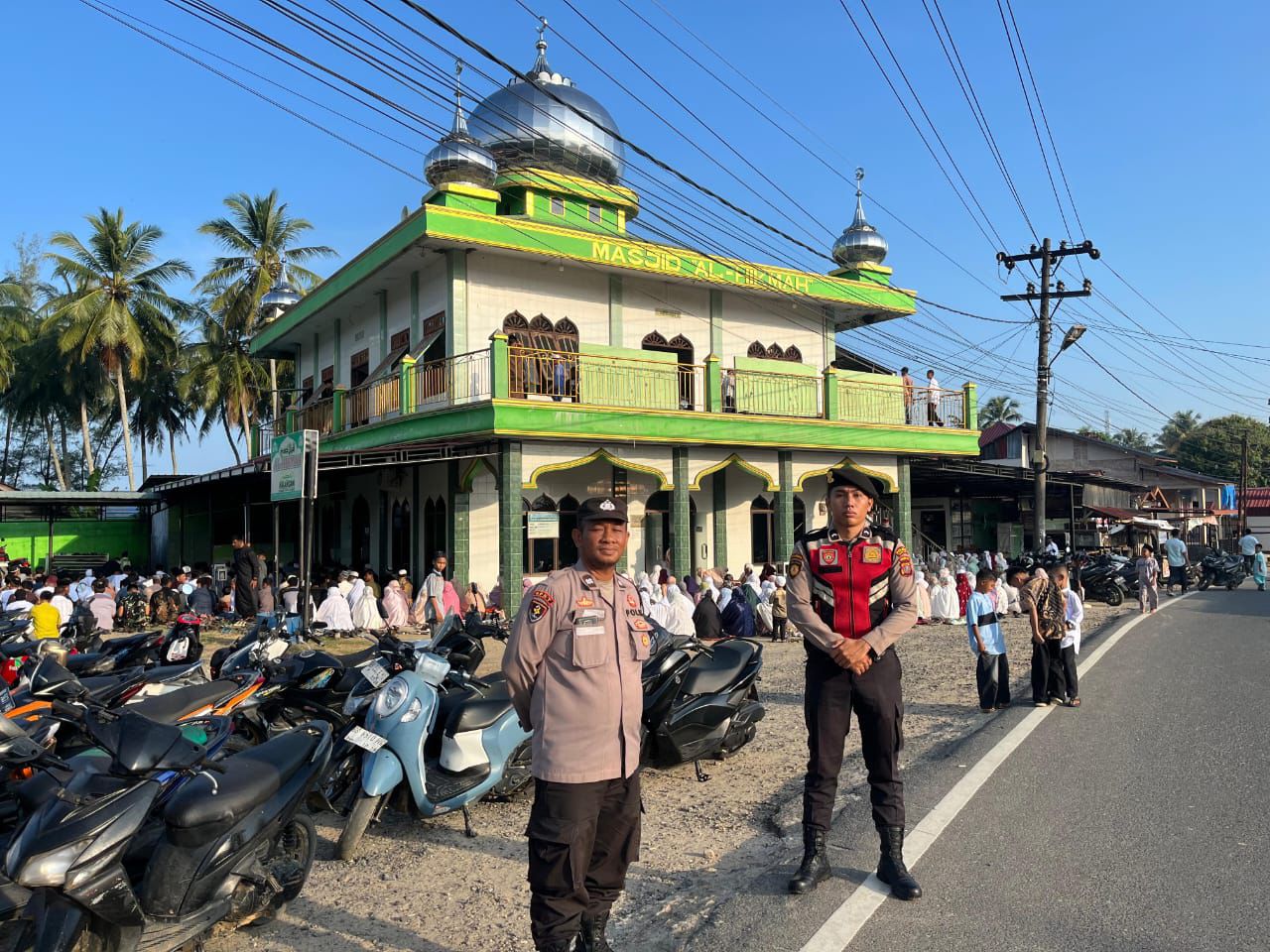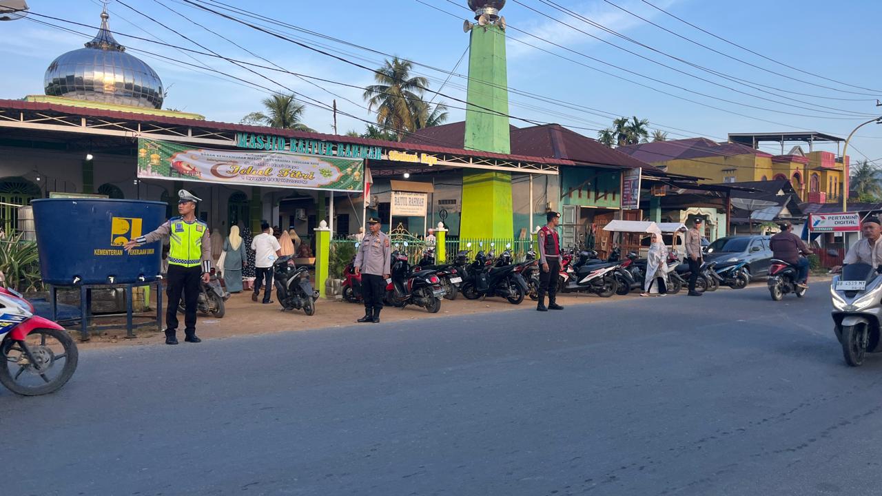 “Sebanyak 99 Orang Personel telah kami tugaskan untuk melaksanakan pengamanan terbuka maupun tertutup, sejak pukul 06.30 WIB. Para Personel ini bersiaga di Masjid-masjid di seluruh Jajaran Polsek, pastikan Jama’ah dapat beribadah dengan tenang tanpa ada gangguan Kamtibmas,” ucapnya.
