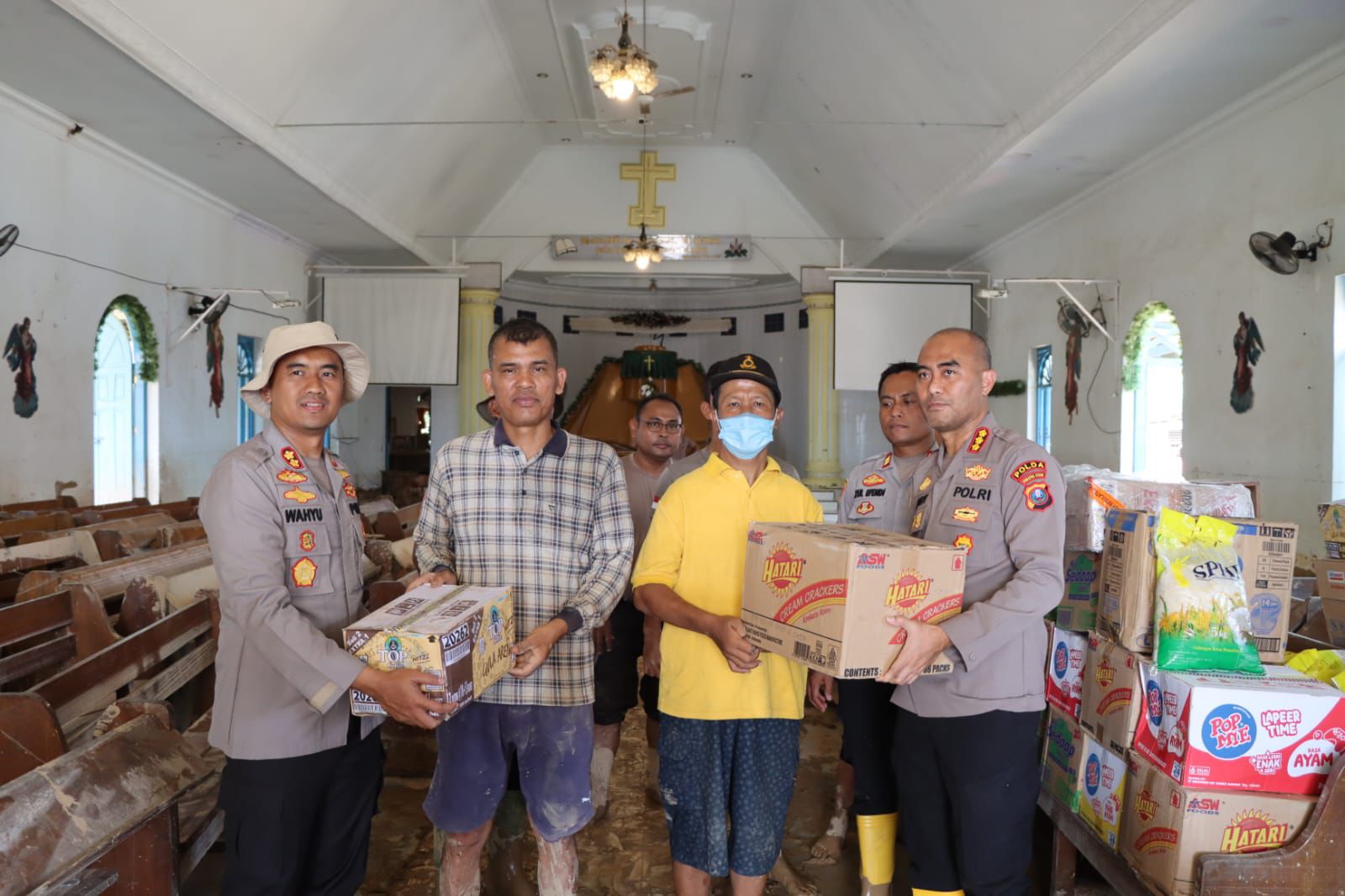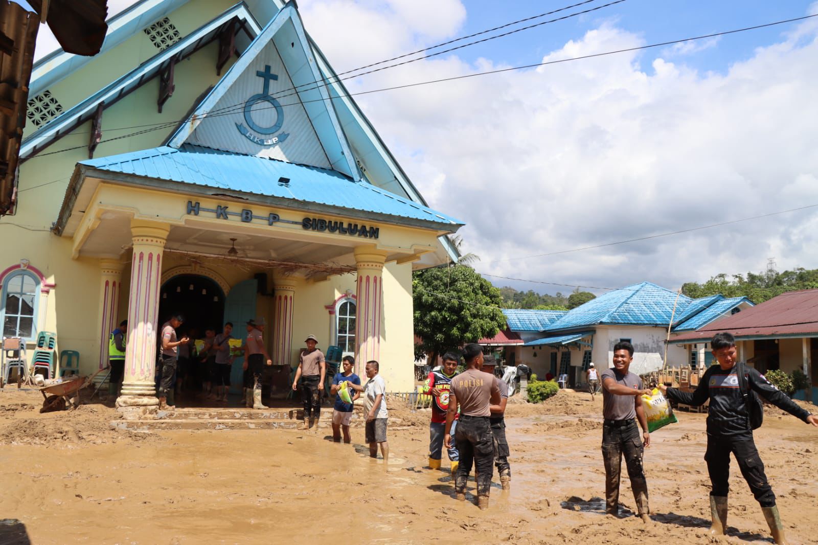 Jajaran Polres Tapteng berkolaborasi dengan Direktur Narkoba Polda Sumatera Utara (Sumut) melakukan operasi kemanusiaan menyalurkan bantuan kepada Jemaat Gereja HKBP Sibuluan Yang Terdampak Bencana Alam. Kegiatan ini tidak hanya berupa pemberian logistik, tetapi juga penyaluran air bersih, dan gotong royong membersihkan Area Lokasi Gereja.