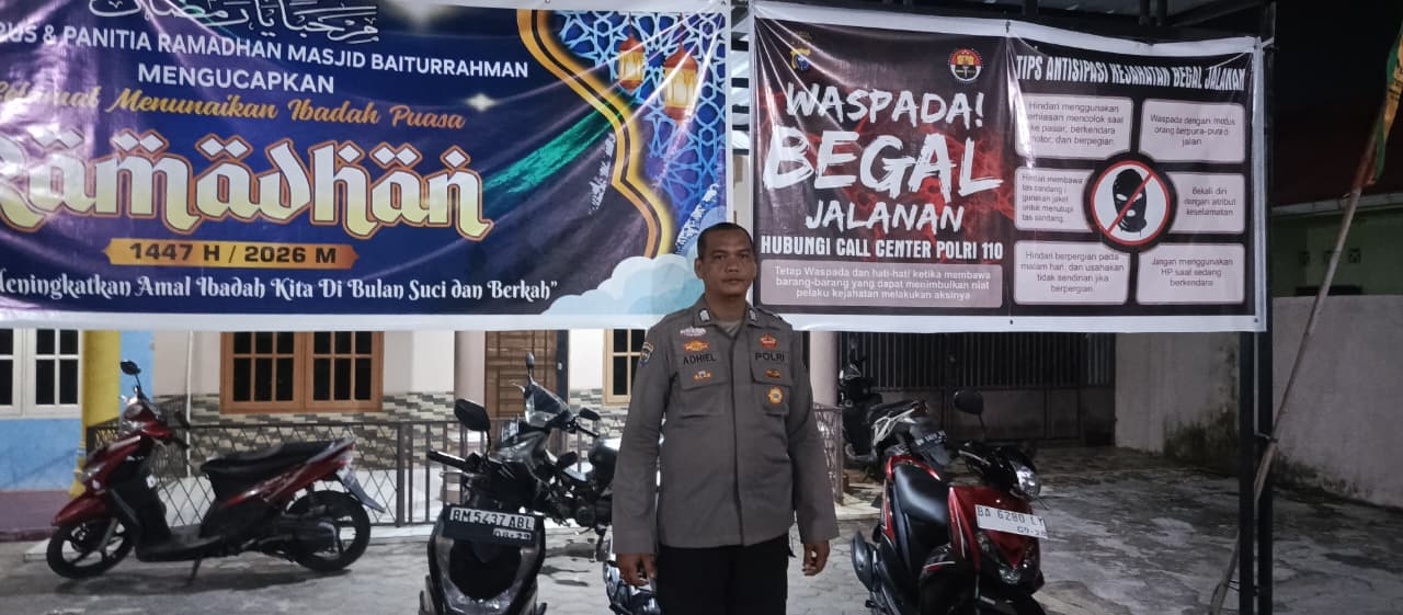 Kamis, (05/03/2026) malam sekira jam 20.00 wib s.d selesai bertempat di mesjid BAITUL RAHMAN Jl. Swahada RT 01 RW 07 Kel. Maharatu Kec. Marpoyan Damai Pekanbaru ,Bhabinkamtibmas Kel Maharatu Bripka RAMADIL PUTRA melaksanakan pengamanan ibadah Shalat Isya yang dilanjutkan dengan Shalat Tarawih berjamaah.