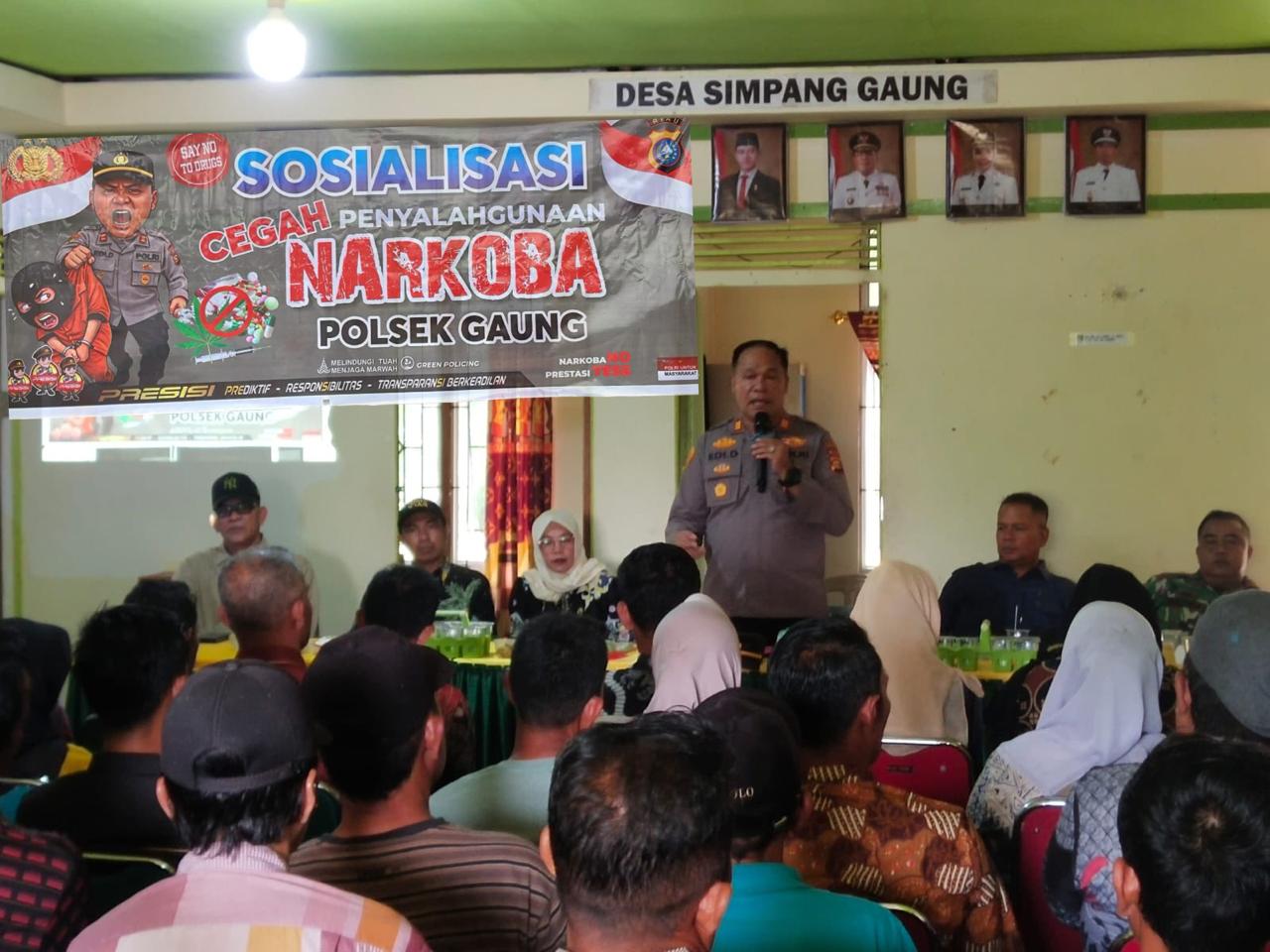 Dalam rangka mendukung pelaksanaan Operasi Antik, Polsek Gaung menggelar kegiatan sosialisasi pencegahan penyalahgunaan narkoba di wilayah hukumnya. Kegiatan tersebut dilaksanakan pada Kamis (23/4/2026) sekira pukul 10.30 WIB, bertempat di Kantor Desa Simpang Gaung, Kecamatan Gaung.