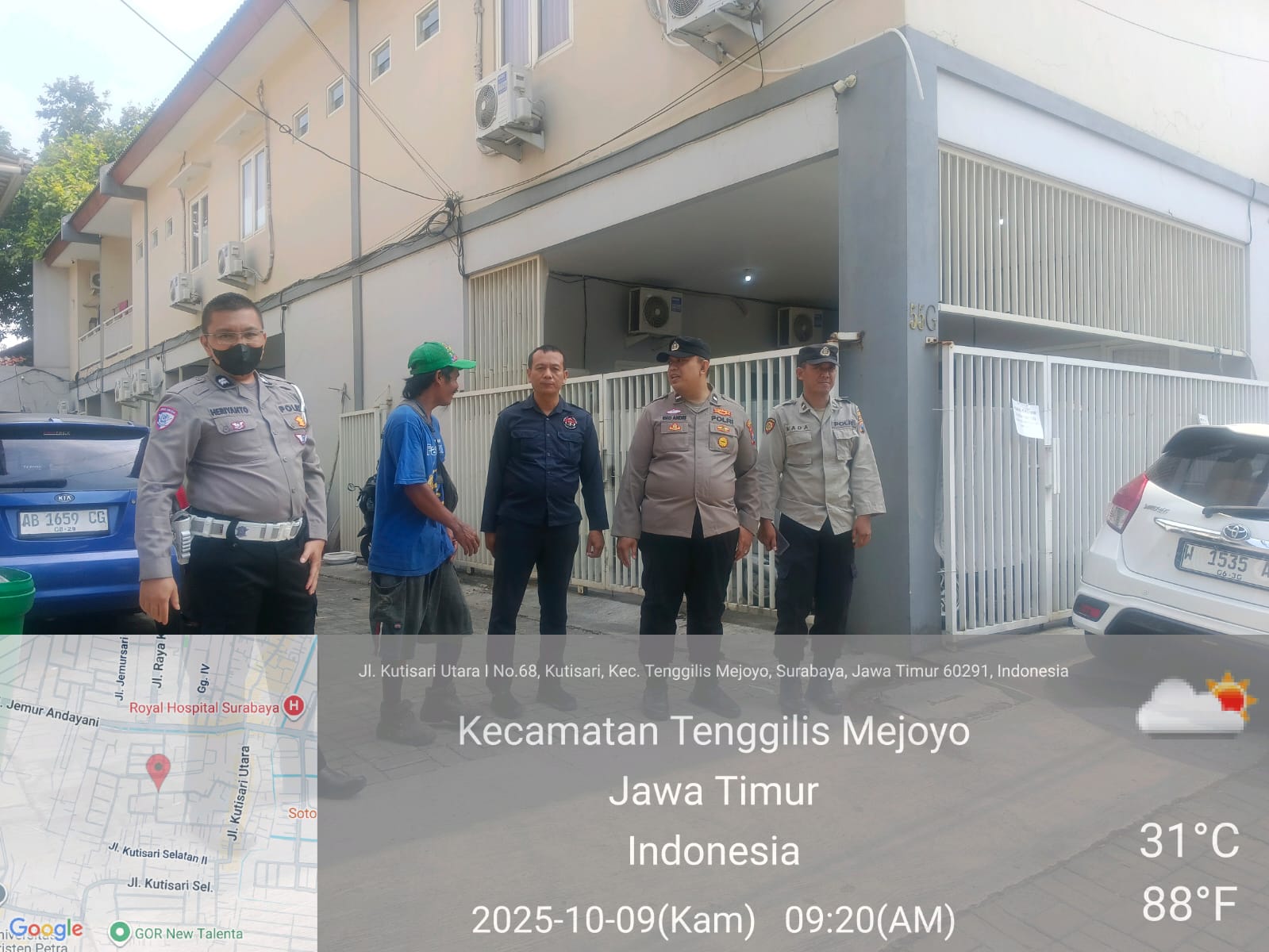 Polsek Tenggilis Mejoyo melaksanakan patroli kota presisi di wilayah pemukiman warga Kutisari, Surabaya, pada Kamis (9/10/2025) pagi. Kegiatan ini bertujuan untuk mengantisipasi kejahatan jalanan seperti pencurian dengan pemberatan (curat), pencurian dengan kekerasan (curas), dan pencurian kendaraan bermotor (curanmor), atau yang dikenal dengan istilah kejahatan 3C.