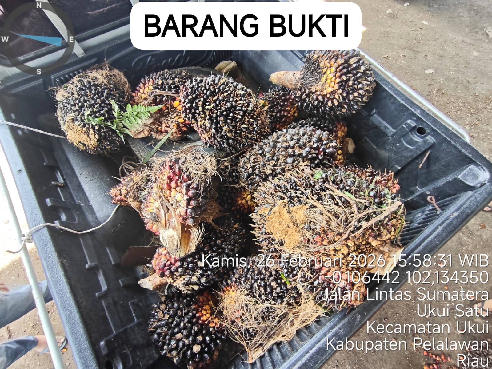 Polsek Ukui menerima laporan polisi dugaan tindak pidana pencurian buah kelapa sawit milik Sdri. KARTINI di Perkebunan Buah Kelapa Sawit, Kel. Pangkalan Lesung Kec. Pangkalan Lesung Kab. Pelalawan pada Kamis (26/2/2026).8