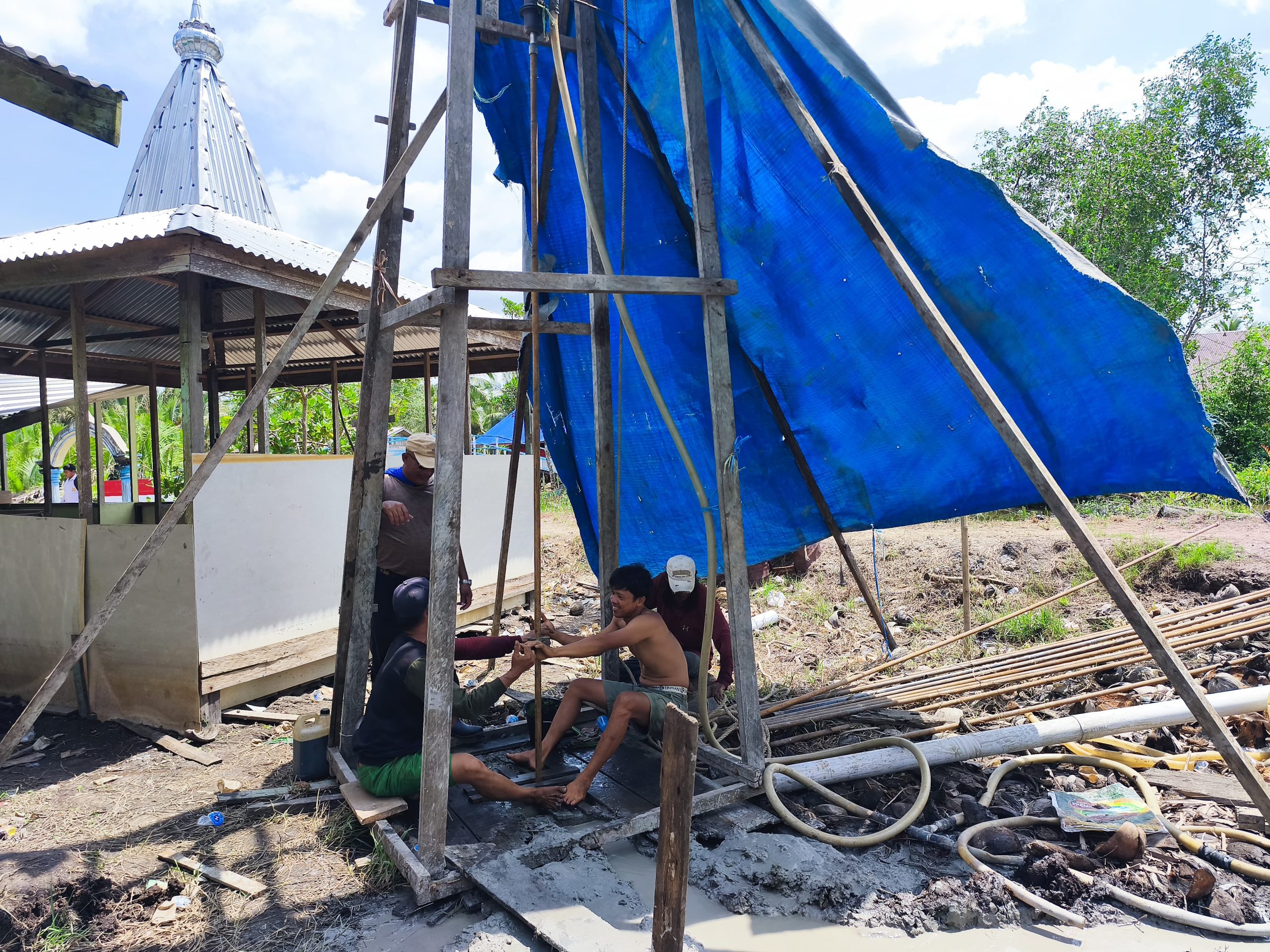 Pada kegiatan hari ini difokuskan pada pengecatan lantai jembatan, pengecatan plafon dan dinding ruang kelas SDN 020, serta pembuatan sumur bor di Masjid Al-Firdaus Parit 14 Hilir Sapat.