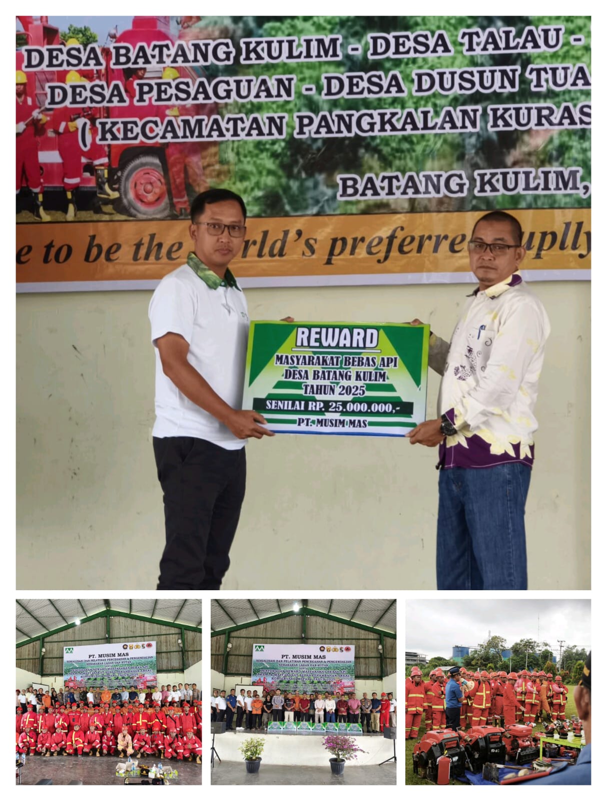 Selain kegiatan sosialisasi dan pelatihan pencegahan dan pengendalian kebakaran, PT Musim Mas juga melaksanakan pemberian Reward Masyarakat Bebas Api (MBA) dan Reward Masyarakat Bebas Perambahan Areal Konservasi (MBPAK) kepada Desa dan Kelurahan sekitar perusahaan yang mampu menjaga desa nya dari kebakaran Hutan dan Lahan serta tidak ada perambahan di areal Konservasi PT Musim Mas.