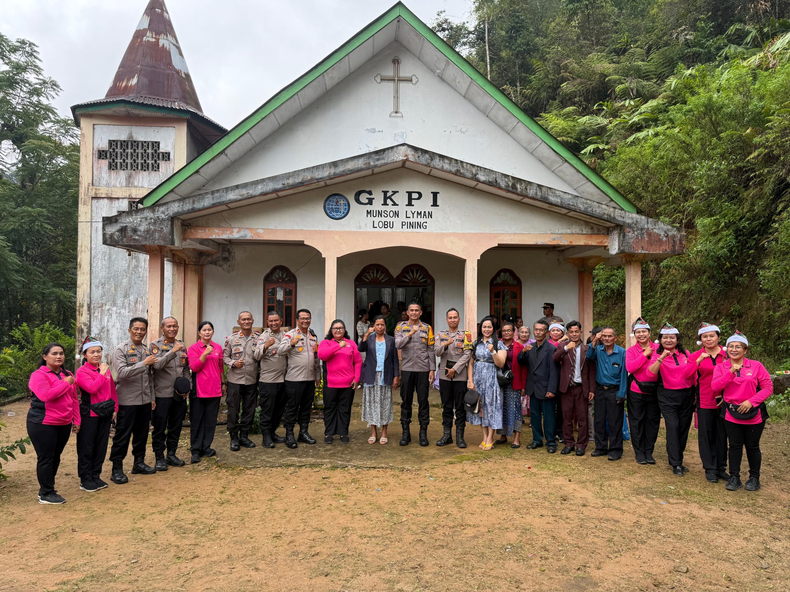 Kepolisian Negara Republik Indonesia melalui Polres Tapanuli Utara menggelar Perayaan Ibadah Natal Tahun 2025 bersama Warga Masyarakat Korban Bencana Alam Tanah Longsor di Gereja GKPI Dolok Nauli, Desa Dolok Nauli, Kecamatan Adiankoting, Kabupaten Tapanuli Utara, Kamis (25/12/2025).