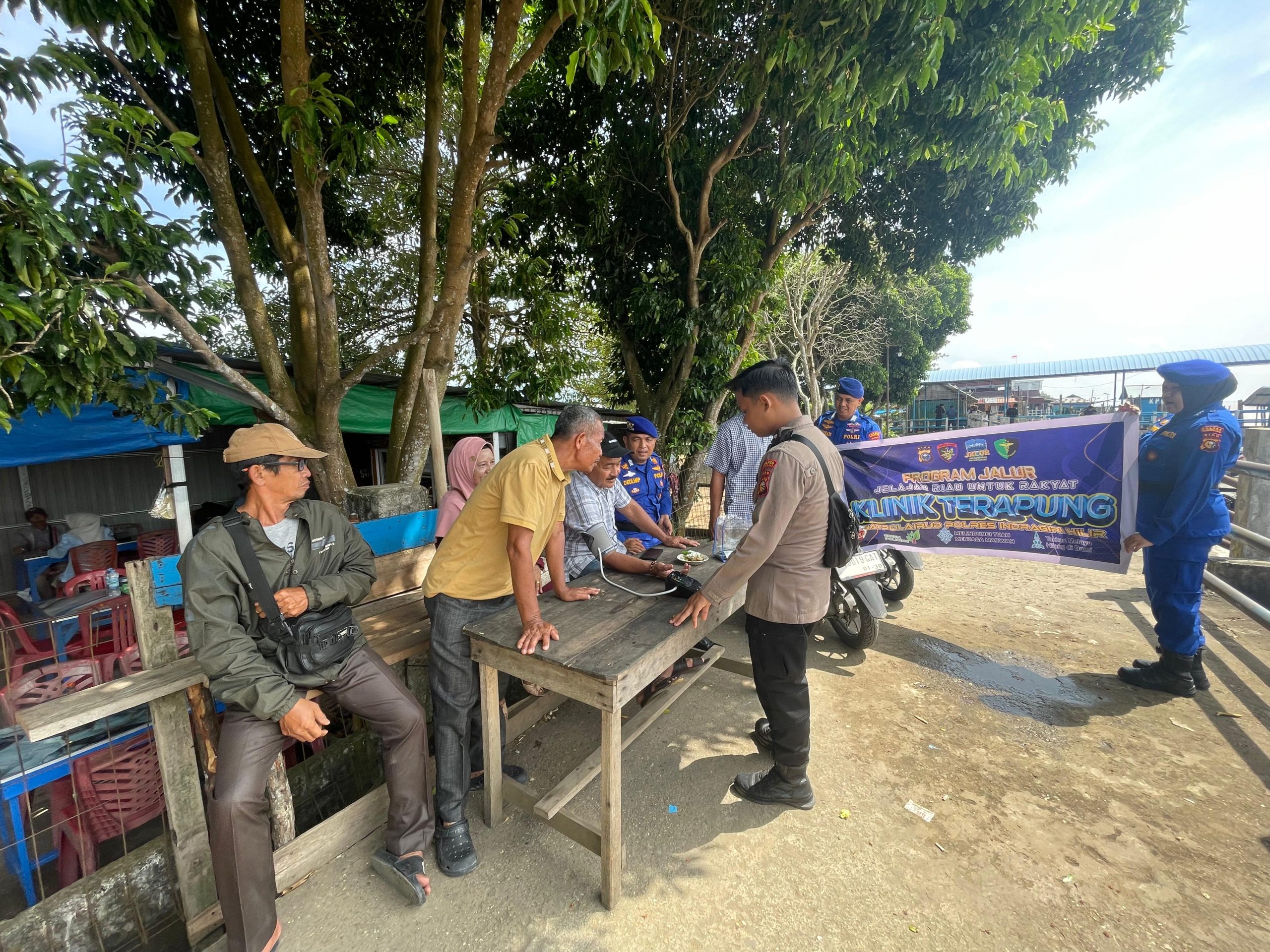 Satuan Polisi Air dan Udara (Satpolairud) Polres Indragiri Hilir kembali melaksanakan Program JALUR (Jelajah Riau untuk Rakyat) dengan menghadirkan pelayanan kesehatan gratis melalui kegiatan Klinik Terapung bagi masyarakat pesisir di kawasan Pelabuhan Pelindo, Tembilahan, Kabupaten Indragiri Hilir, Kamis (23/10/2025).