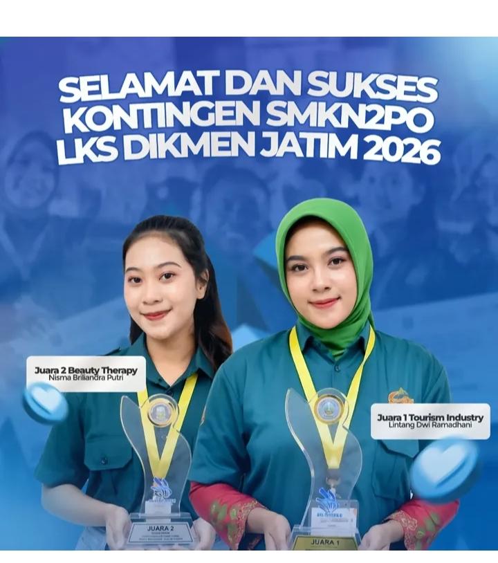 SMK Negeri 2 Ponorogo kembali menorehkan prestasi membanggakan dalam ajang Lomba Kompetensi Siswa (LKS) Tingkat Provinsi Jawa Timur Tahun 2026. Pada kompetisi yang berlangsung di Surabaya pada 6 – 9 April 2026 tersebut, sekolah ini berhasil meraih Juara 1 bidang Tourism Industry dan Juara 2 bidang Beauty Therapy.