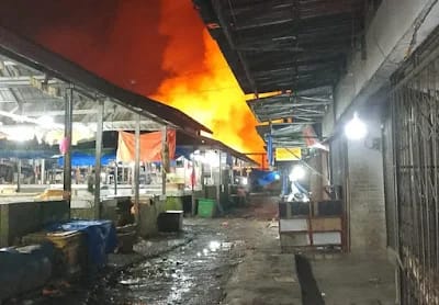 Dalam hitungan menit, si jago merah menjalar cepat, menghanguskan puluhan kios terbuat dari kayu dan dalam kondisi rata-rata berisi ikan asin, ikan basah, sayuran, hingga kebutuhan sembako sehari-hari untuk di rumah.