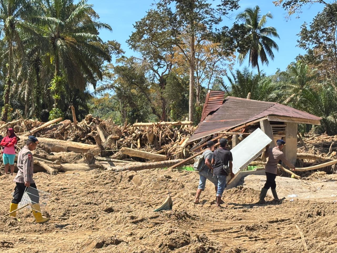 Desa Garoga, Kecamatan Batang Toru, Kabupaten Tapanuli Selatan, turut terdampak Bencana Banjir Bandang dan Tanah Longsor. Satuan Brimob Polda Sumut hadir memberikan pelayanan membantu Warga yang terdampak, Rabu (03/12/2025).