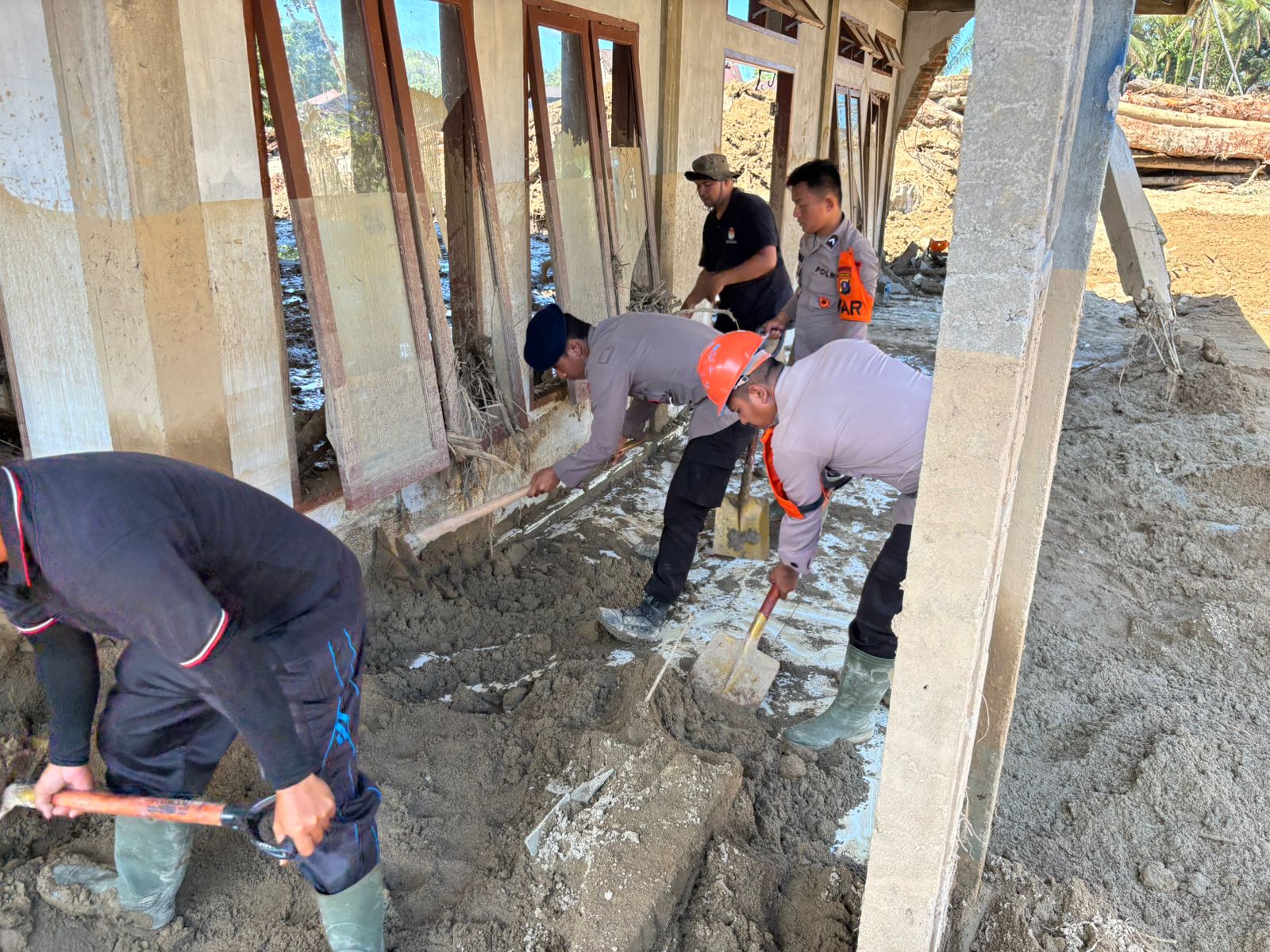 Personel Brimob turun ke area lokasi yang tertimbun lumpur, membantu membersihkan Masjid dan Rumah para Warga. Dengan sigap, Tim SAR Brimob mengevakuasi Warga yang mengalami gangguan kesehatan akibat dampak bencana. Evakuasi Warga dilakukan, agar setiap Warga mendapat penanganan dan pelayanan Medis tidak tertunda.